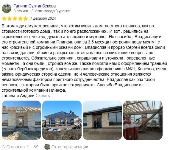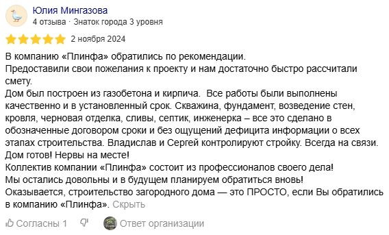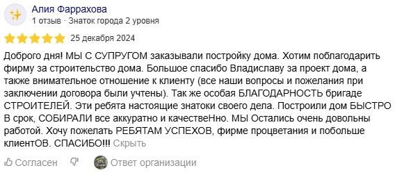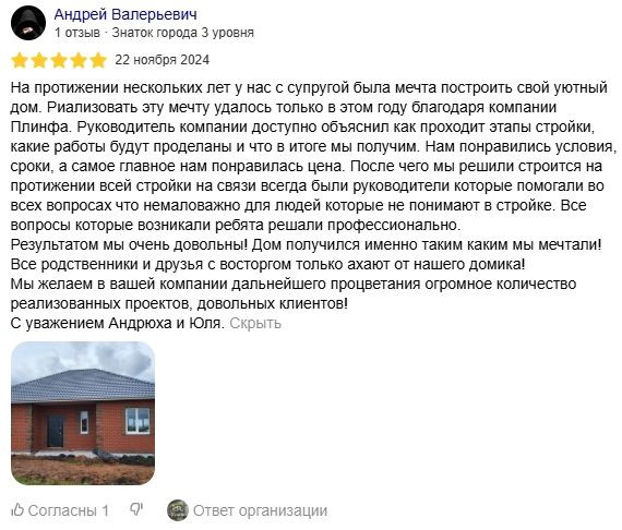 Мы ценим доверие каждого клиента и всегда стремимся оправдать ожидания. Ваши отзывы вдохновляют нас становиться лучше и подтверждают качество нашей работы. Ознакомьтесь с мнением тех, кто уже построил дом с нашей помощью.